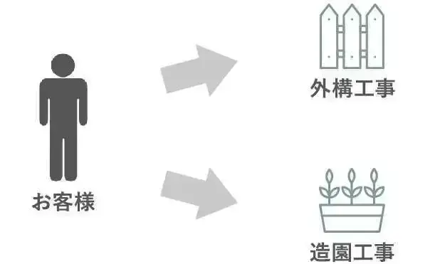 一般的なハウスメーカー様などに外構・エクステリア工事をご依頼いただいた場合、工事ごとに外注業者を利用するため、コストがかさんだり打ち合わせがスムーズにいかなかったりする可能性があります。その分ミスや間違いのリスクも高まります。