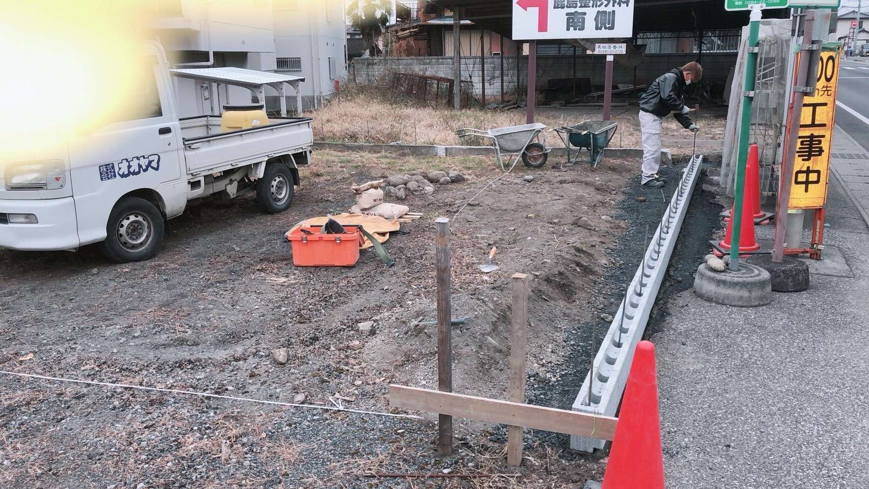 佐野市O様邸 外構工事 施工事例になります☆彡 . 駐車スペースは広々と計画し、玄関の前までお車が寄せられるようになっております♪ お庭と…