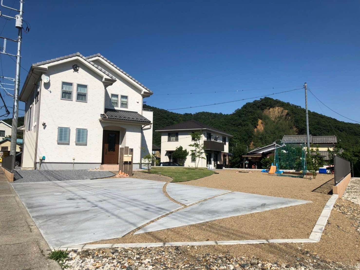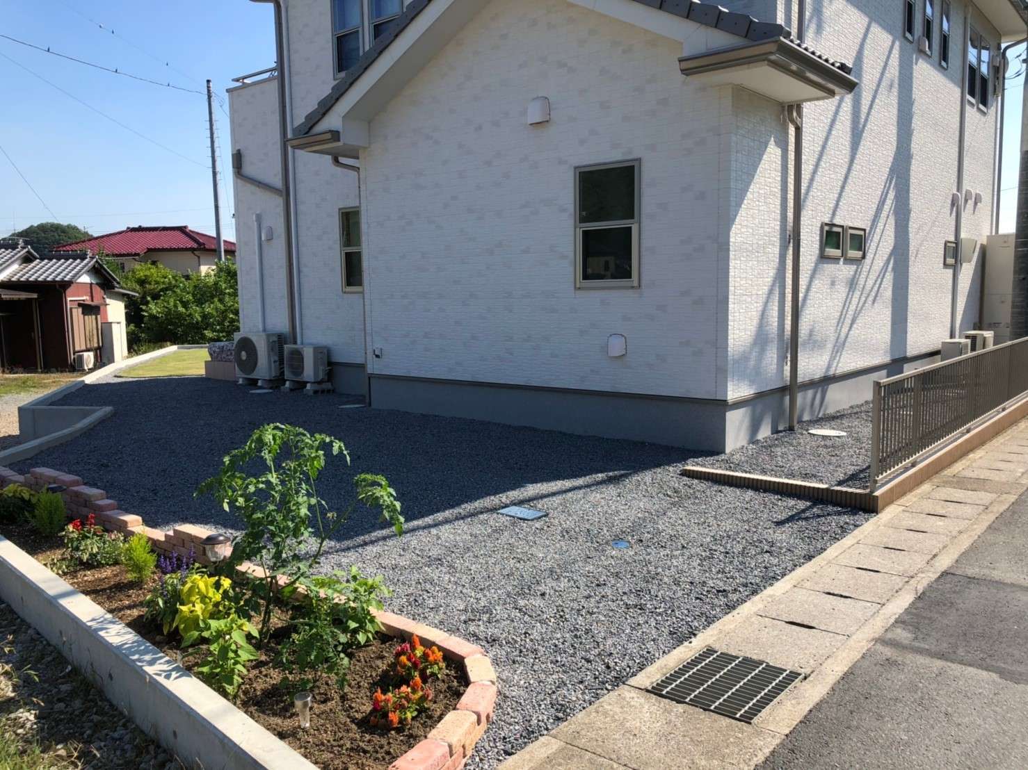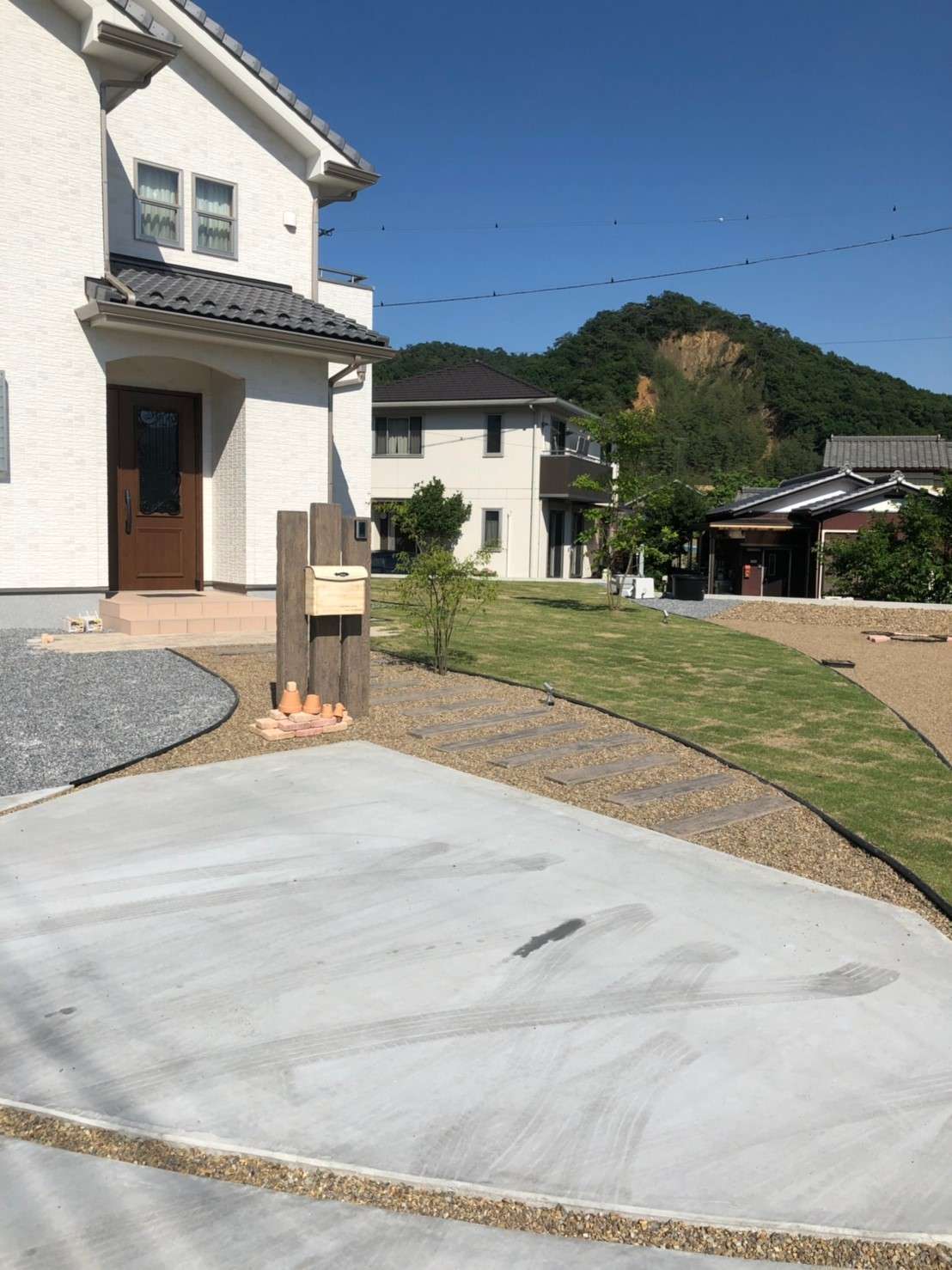 佐野市O様邸 外構工事 施工事例になります☆彡 . 駐車スペースは広々と計画し、玄関の前までお車が寄せられるようになっております♪ お庭と…