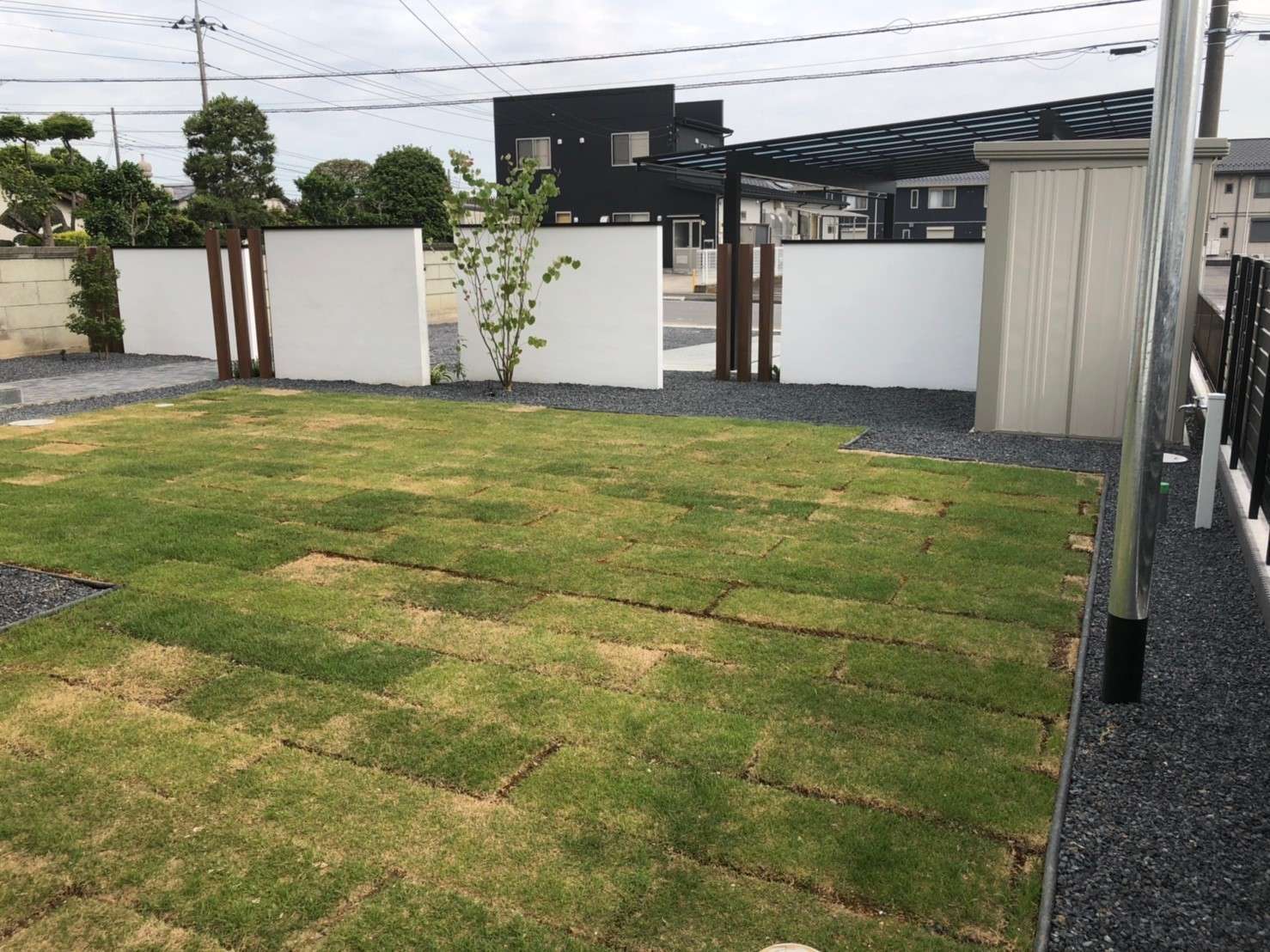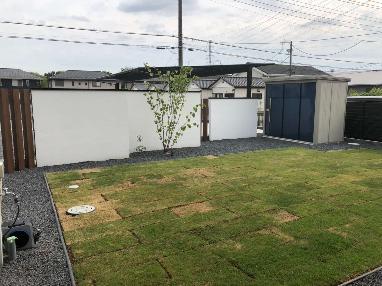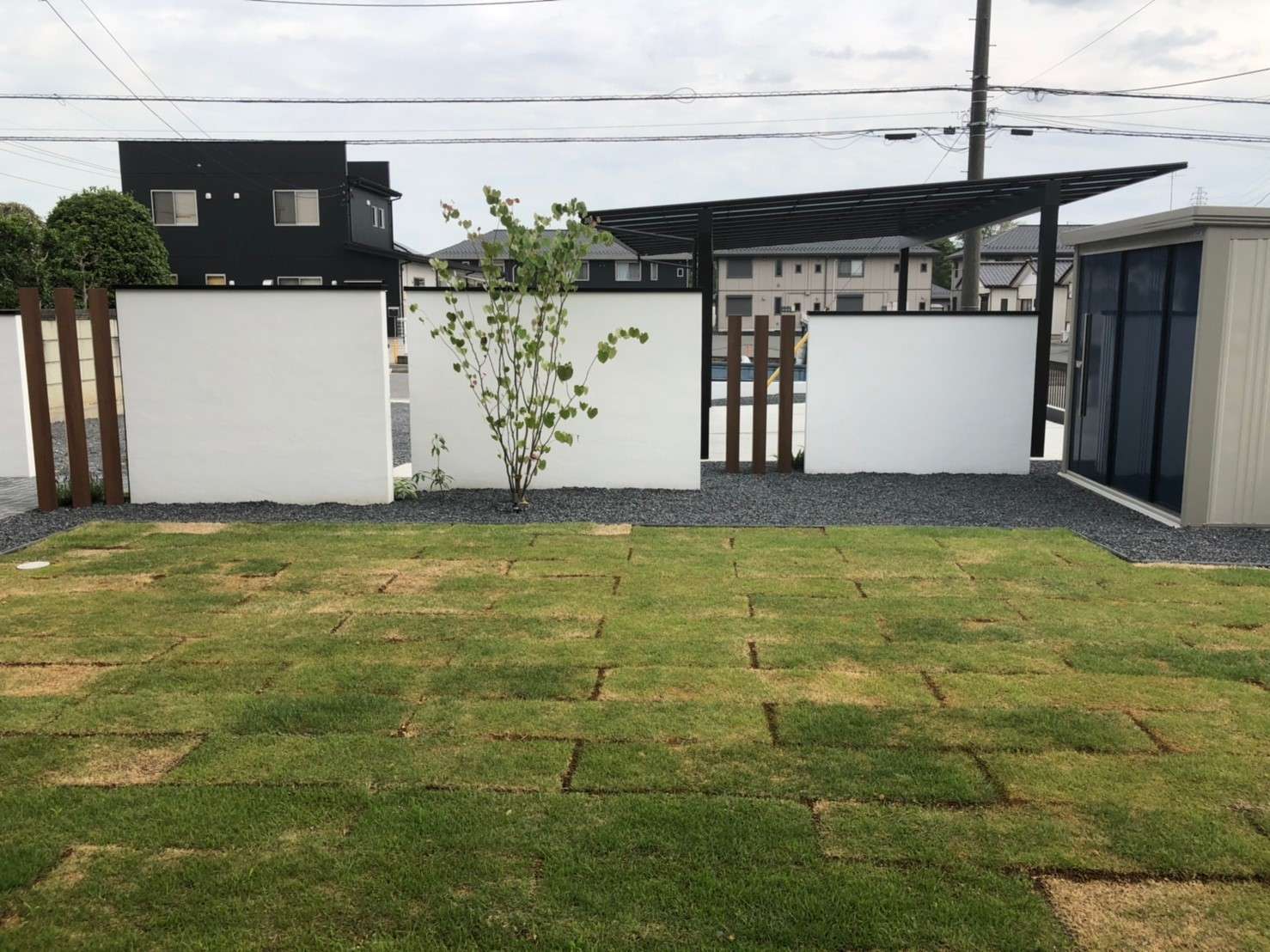 戸建て 佐野市 花壇 コンクリート ブロック 照明 アプローチ 天然芝 門柱 インターロッキング カーポート 佐野市 S様邸 外構工事 佐野市 S様邸 外構工事 前の施工事例 戸建て 足利市 U様邸 外構工事 次の施工事例 戸建て 宇都宮市 S様邸 外構工事①