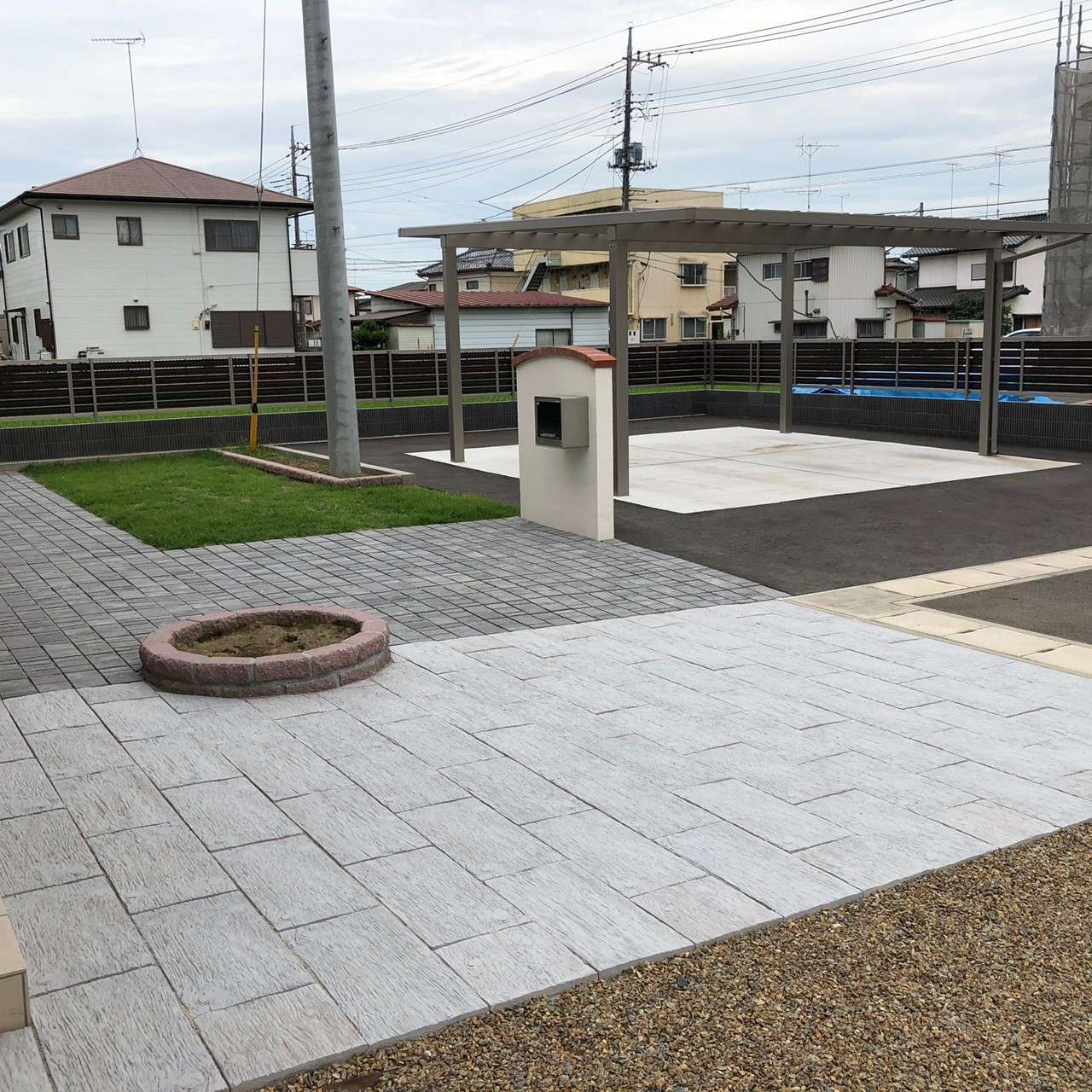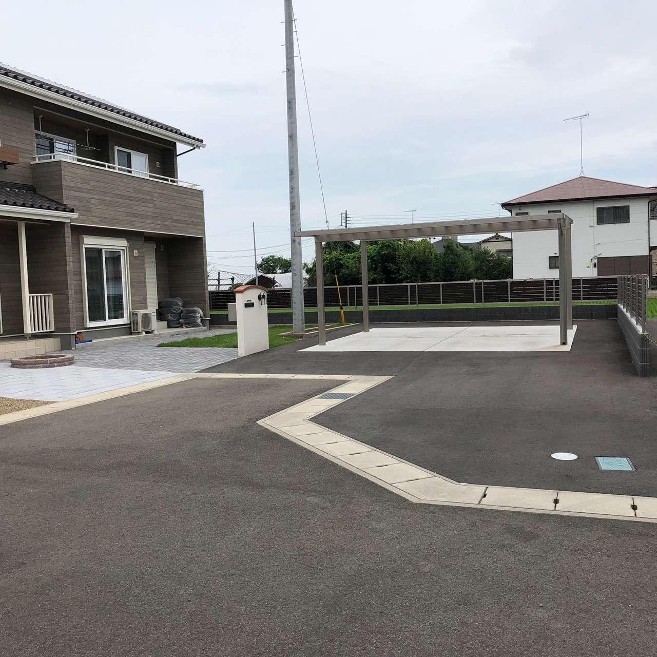 佐野市M様邸の外構工事 施工事例になります☆彡 . 駐車スペースに余裕を持たせるために後方支持タイプのカーポートをご採用いただきました! …