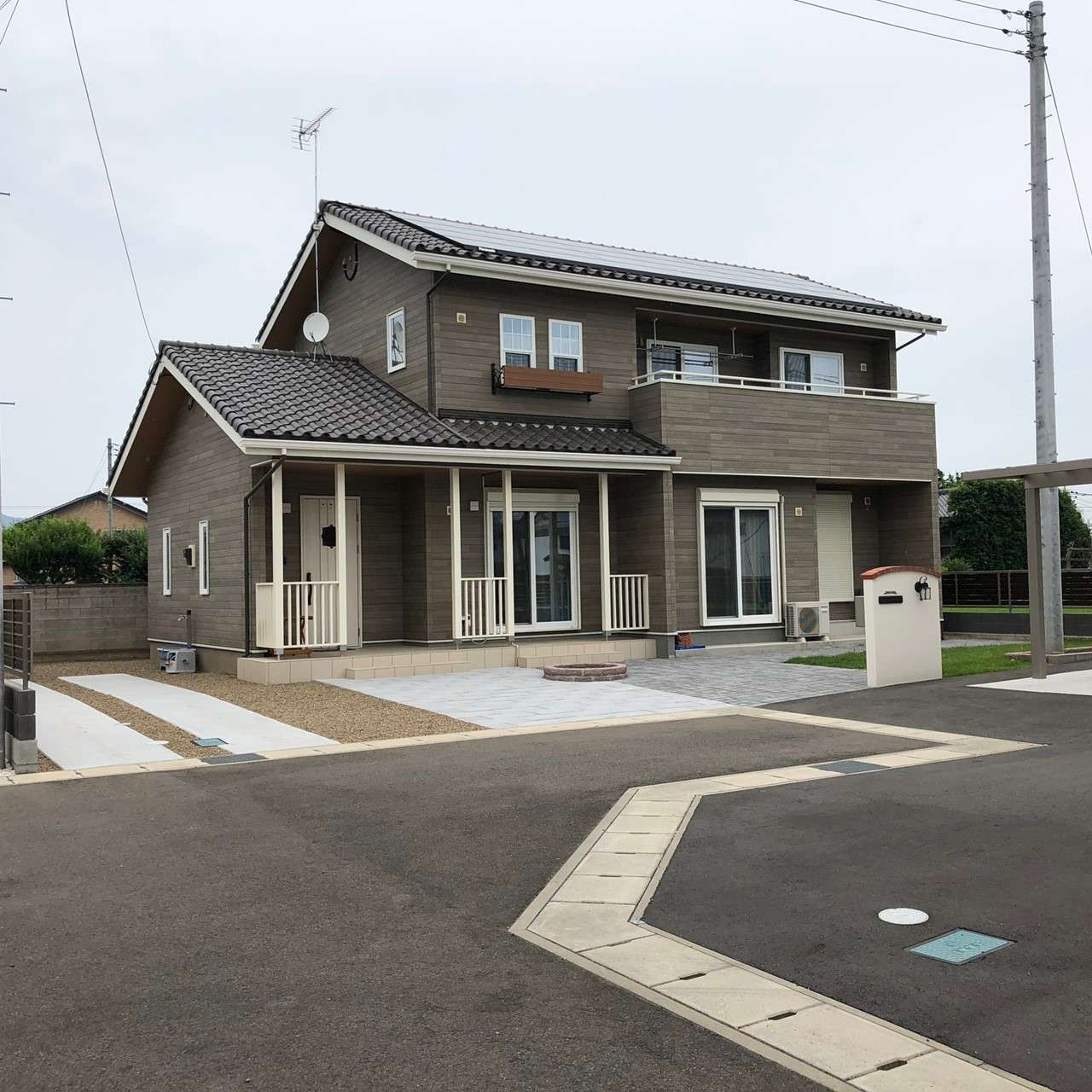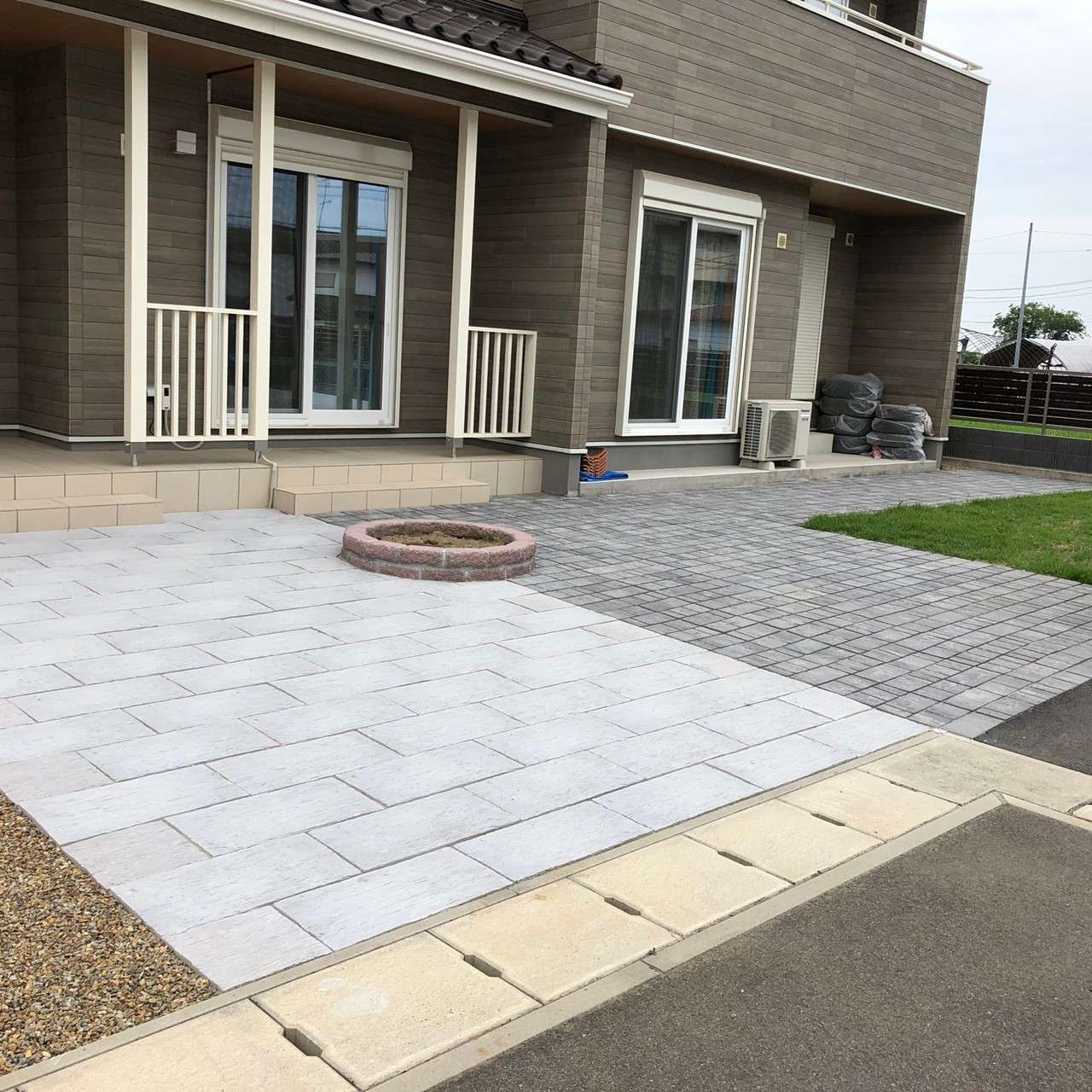 佐野市O様邸 外構工事 施工事例になります☆彡 . 駐車スペースは広々と計画し、玄関の前までお車が寄せられるようになっております♪ お庭と…