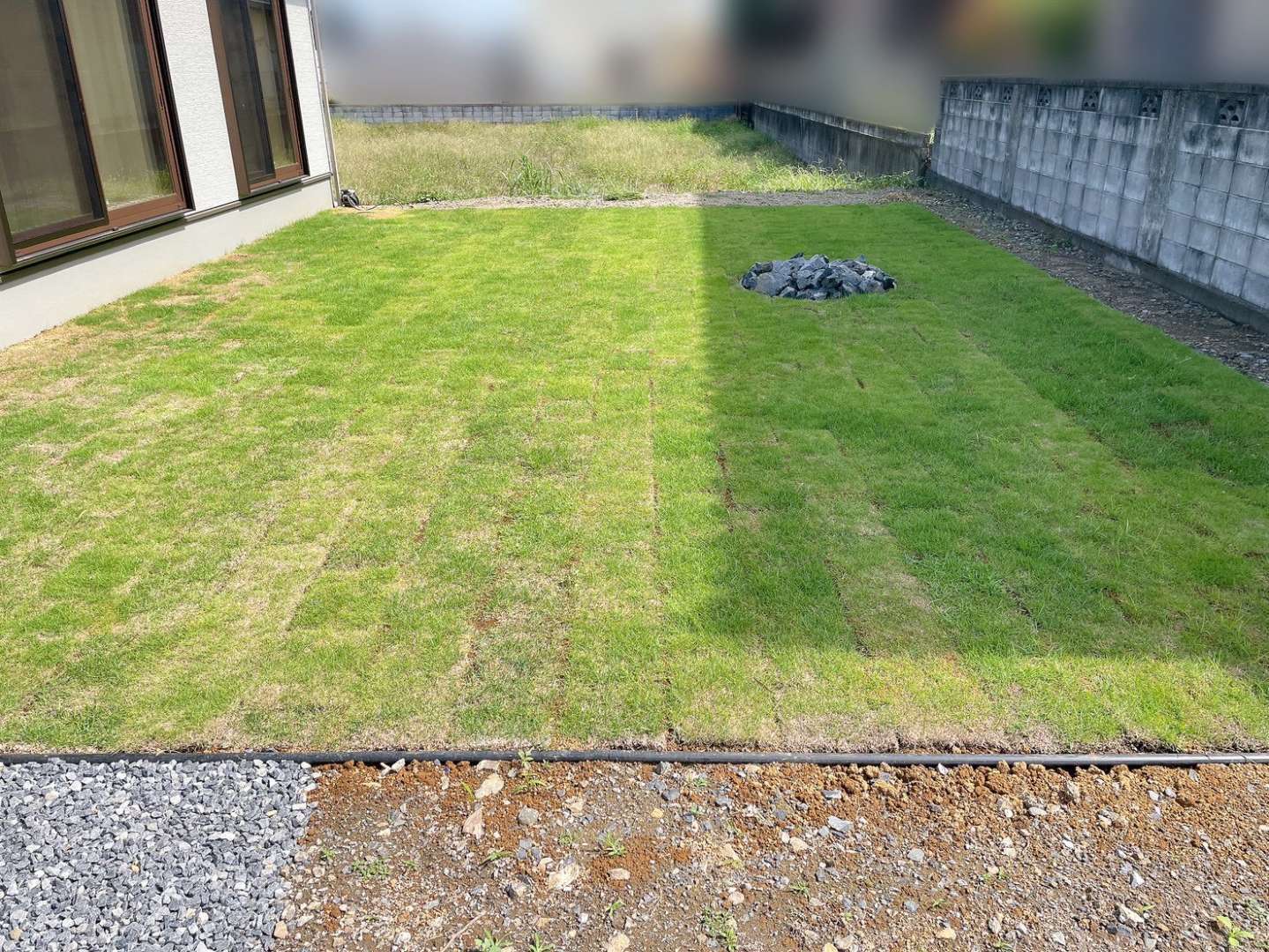 お庭には天然芝を施工させていただきました(^^)