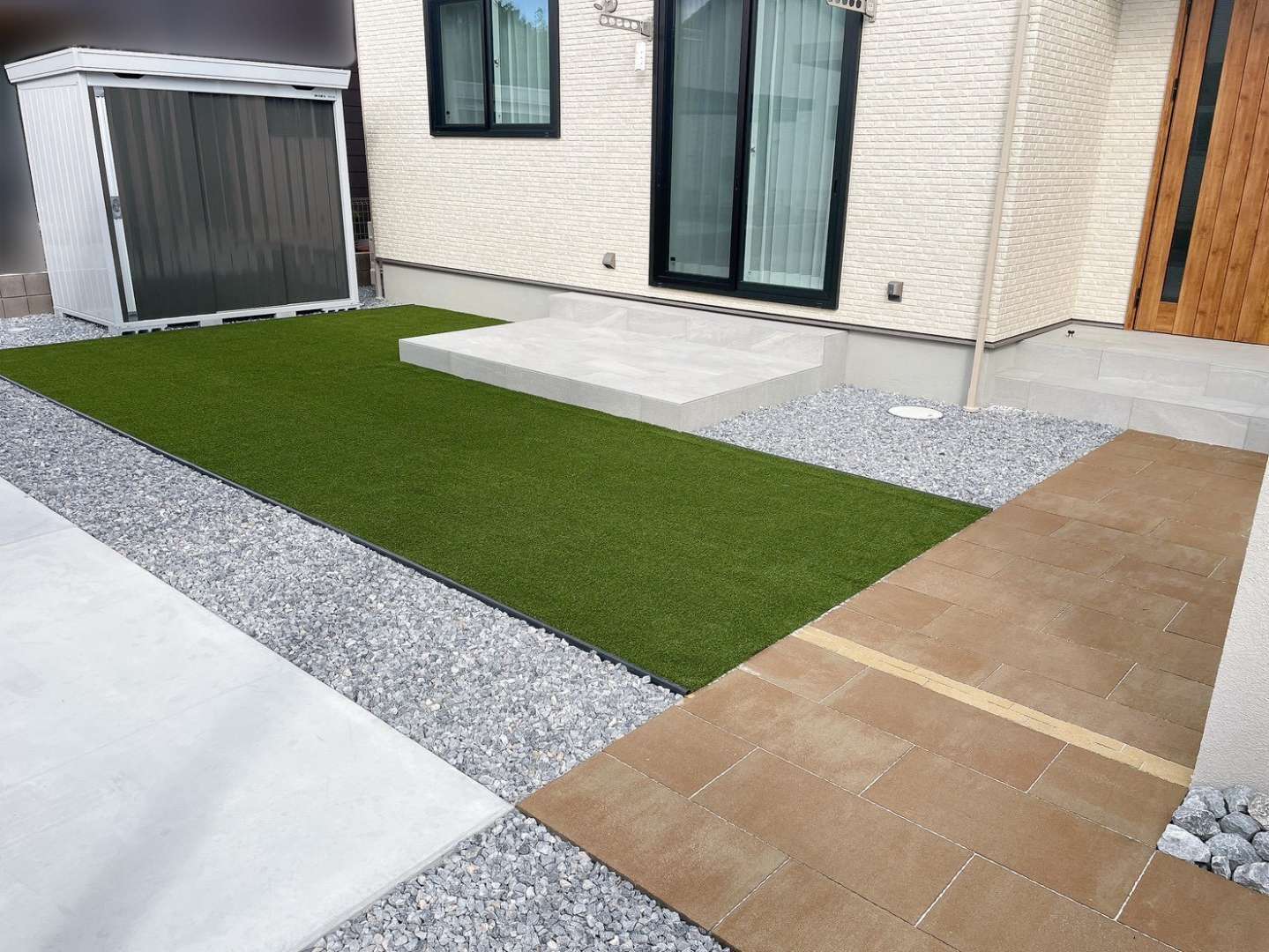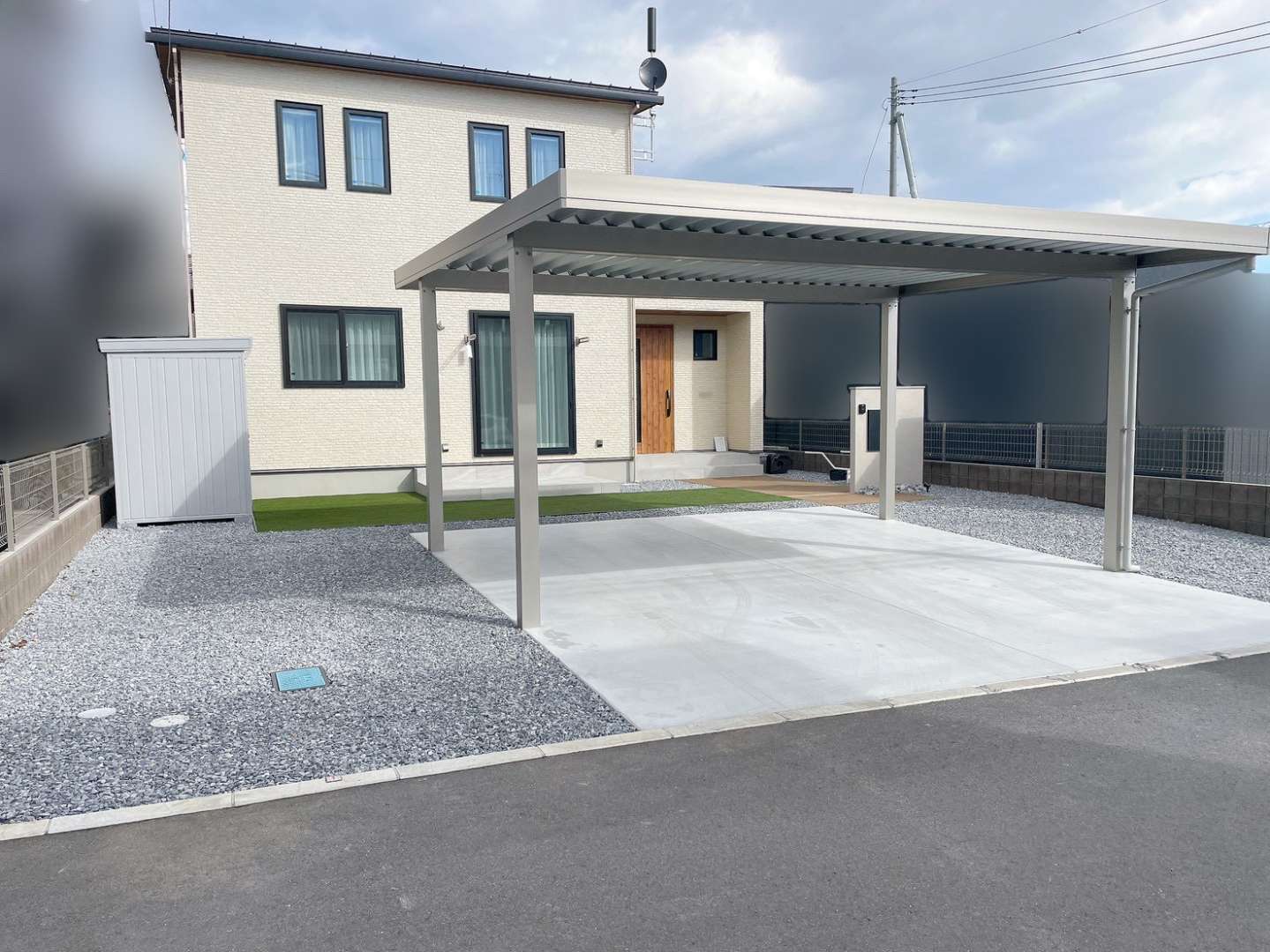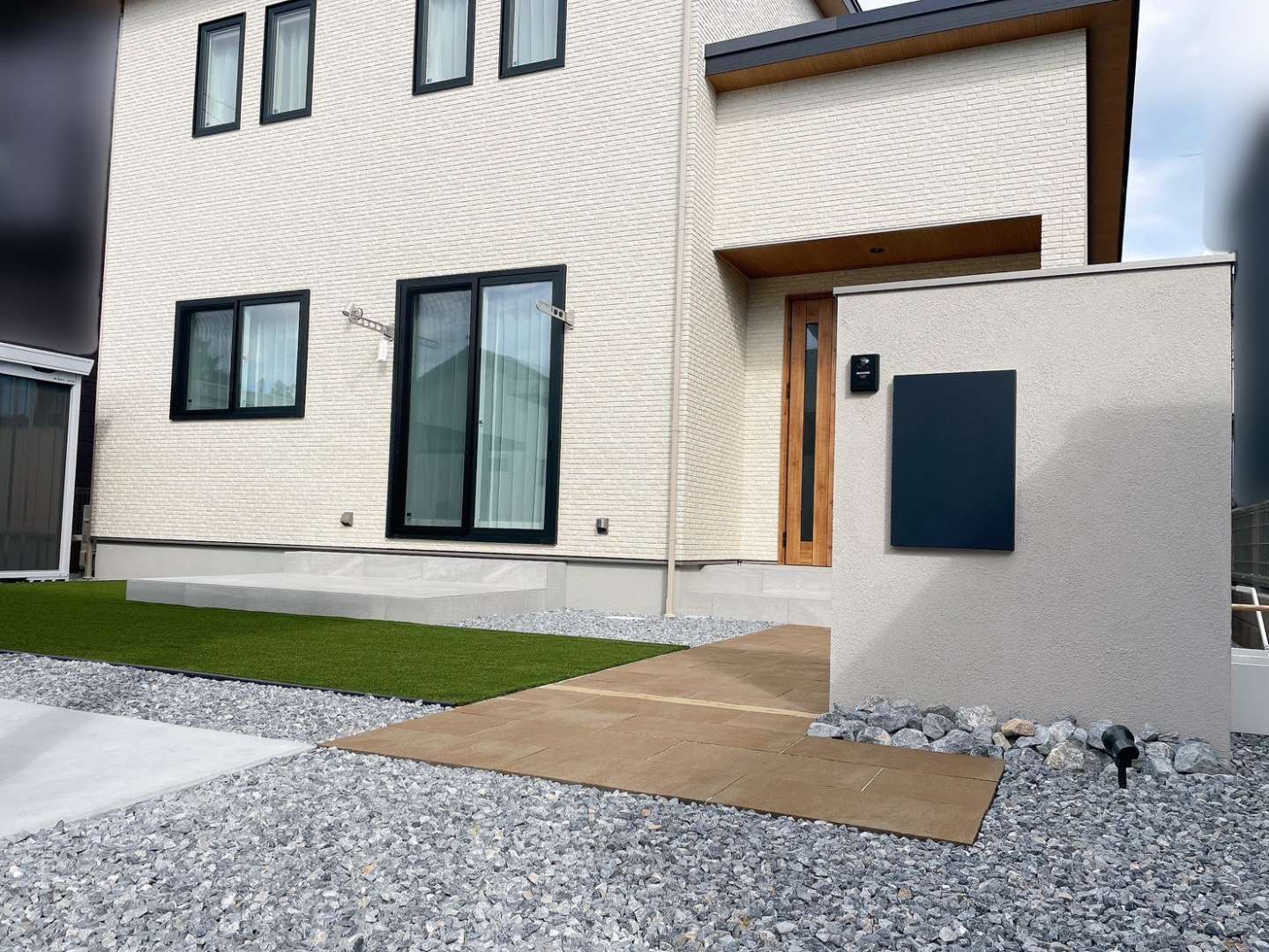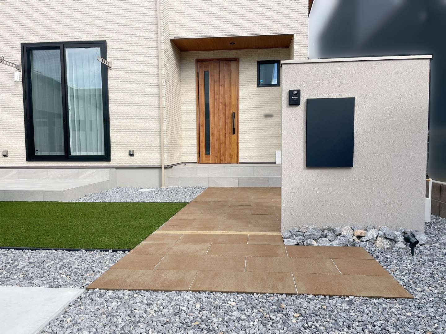 門柱のベージュ系と笠木のステン色の組み合わせはとても素敵ですね♪